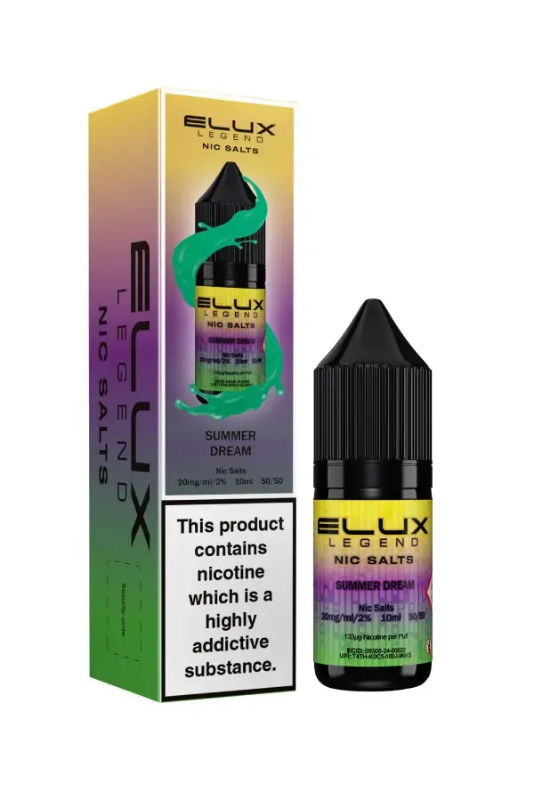 Elux Legend Nic Salts 10ml are the natural next step for the Elux liquid box of 10. Elux started just a few years ago, and it has quickly grown into one of the top names in the disposable vape market. Today, it’s making big moves into the nicotine salt e-liquid market as well.