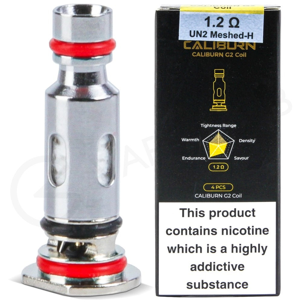 The Caliburn G 0.8 Ohm and Caliburn G2 1.2 Ohm options feature a mesh design, which allows them to heat your e-liquid quickly and evenly, improving flavour. The Caliburn 1.0 Ohm coil features a standard build for discreet vapour production. For all of these coils, we’d recommend e-liquid which has a 50% VG or higher PG concentration.